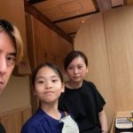 鮭の親子揚げおいしそー(´~`)モグモグ トマトとモッツァレラチーズ のびーん❕ 家族皆ではいポーズ❕ 〆に焼きアイス❕ 海璃の顔が変な顔w